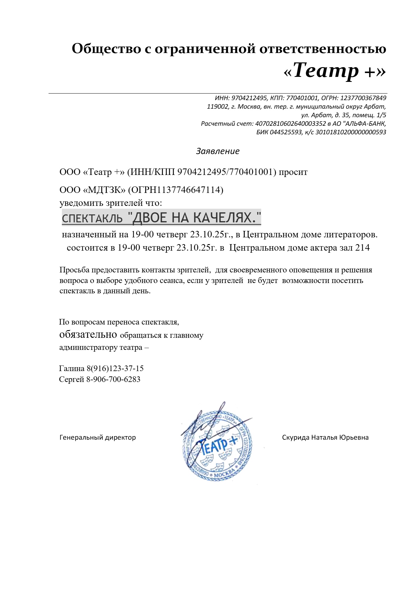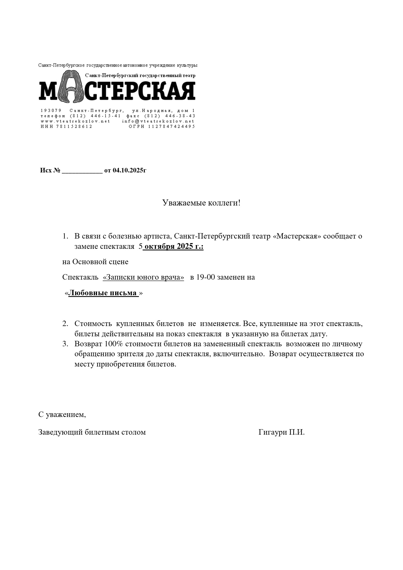 2025-10-09 20:50:00 Спектакль «Любовь не умирает»